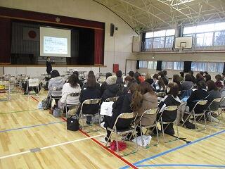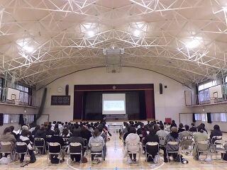 今日の午後は、赤見中学校進学説明会を行い、赤見地区の赤見小学校、石塚小学校、出流原小学校の6年生の児童並びに保護者の方に来校していただきました。赤見中学校の様子や学校生活の決まりなどを説明しました。