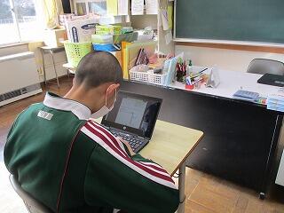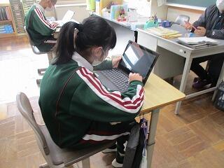 支援学級の社会科の授業では、端末やワークブックを使ってそれぞれ学習をしていました。