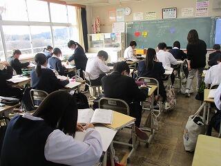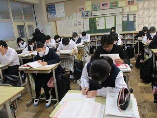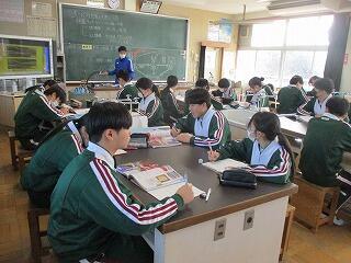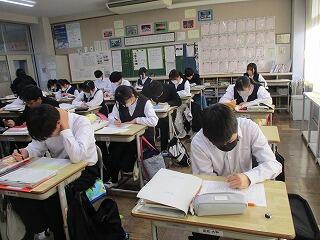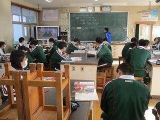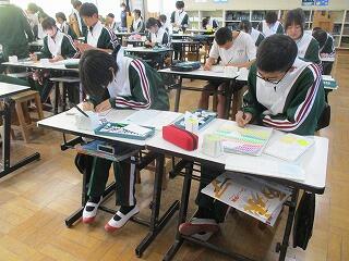 3年1組の国語の授業では、文法のまとめの学習をしていました。ワークブックやプリントの問題を行っていました。