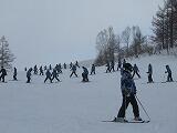 スキーの経験がある班の生徒は少し急な斜面を滑ったり、滑走路にアップダウンがあるコースを滑ったりと、昨日よりもレベルアップしたスキーをしていました。