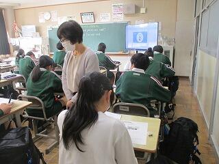 3年2組の英語の授業では、対話文の内容について考えて、その後確認をしていました。