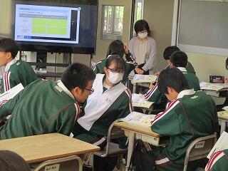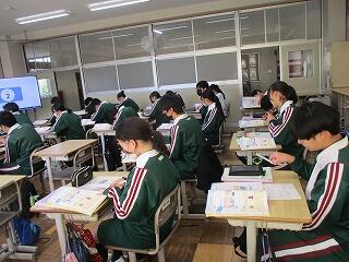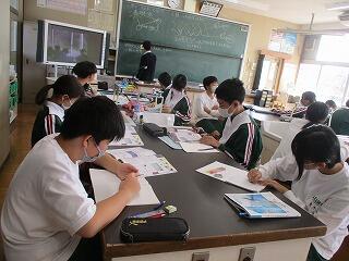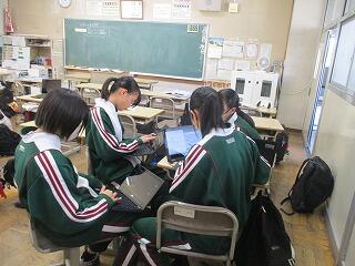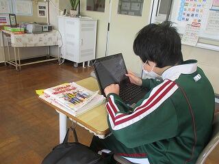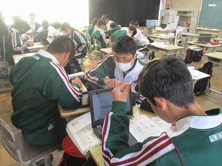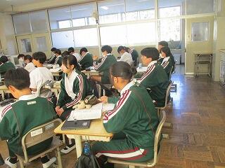 2年2組の社会科の授業では、出題されたテーマについて、端末を使って自分の意見をまとめていました。皆真剣に集中して学習していました。