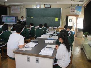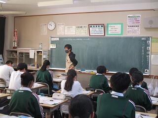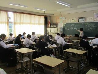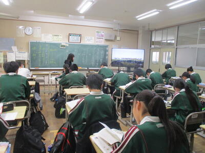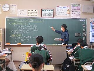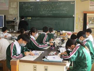 1年2組の数学の授業では、比例と反比例を利用し、日常生活の問題を話し合いをしながら解いていました。