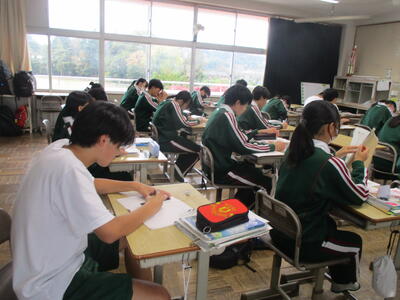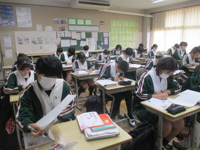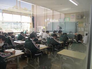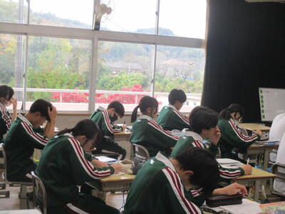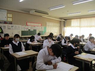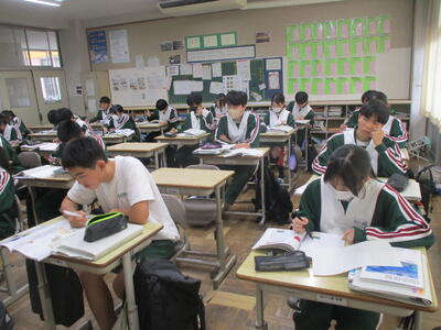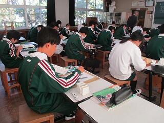 2年1・2組は数学の単元テストを同じ時間に実施していました。
