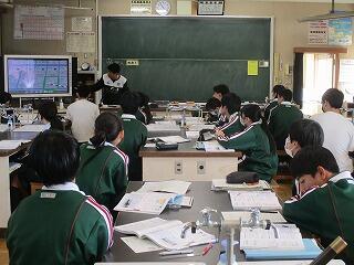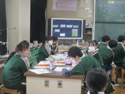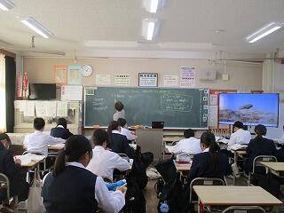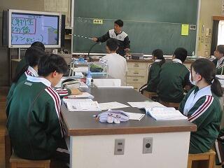 3年2組の理科の授業は、「エネルギー資源とその利用」について学習していました。