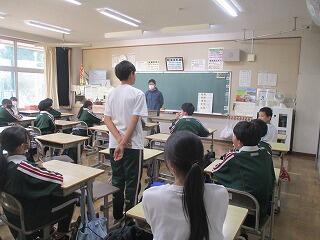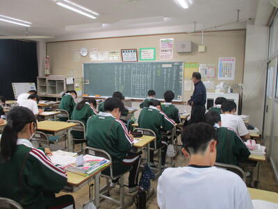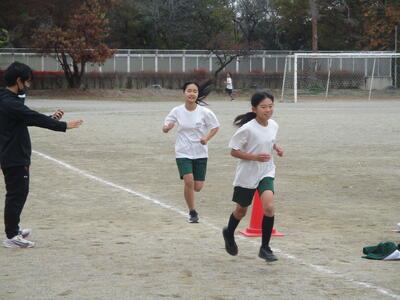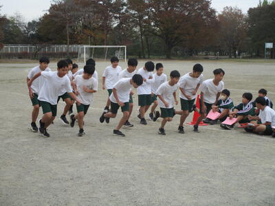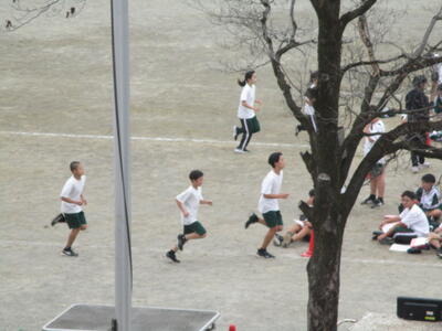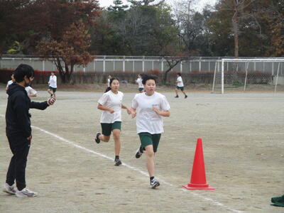 3年生の体育の授業は、長距離走でした。来週校内長距離走大会でもあり、男女ともに一生懸命走っていました。また、ペアの人が大きな声で励ましの言葉をかけているのが、とても素晴らしかったです。