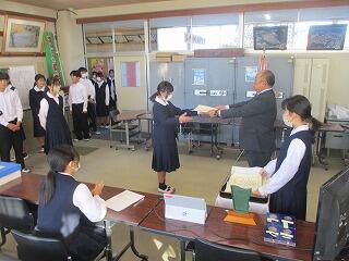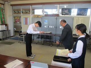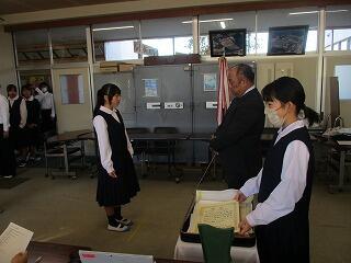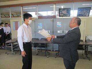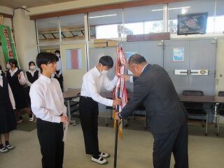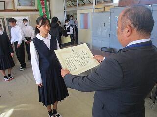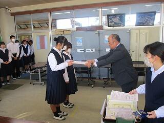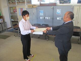 今日は表彰朝会をオンラインで行いました。体調不良の生徒が少なくなりましたが、校長室からのオンラインで行いました。運動面・文化面で多くの生徒が活躍し表彰されました。大変うれしいことです。