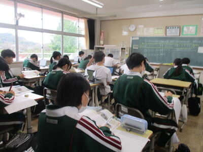 3年2組の国語の授業では「万葉・古今・新古今」の歌詞の魅力を伝える文を書く学習をしていました。