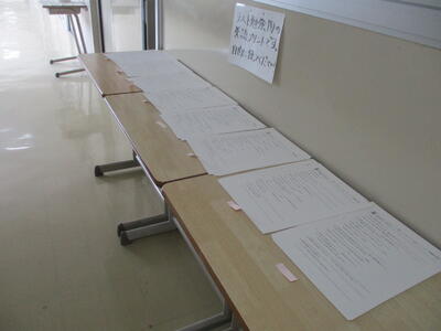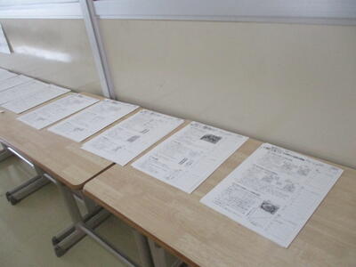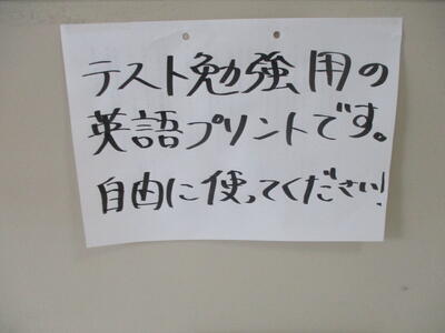 2階の廊下には、英語と理科の学習プリントが置かれています。定期テストも近いです。是非活用しましょう。