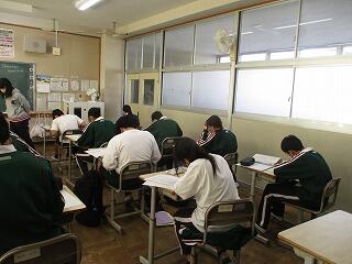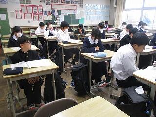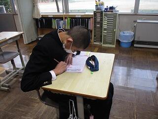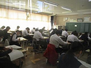 今日から第3回定期テストが始まりました。今日は3教科でした。皆一生懸命取り組んでいました。