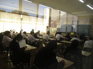 放課後には、水曜日からの定期テストに向けて、希望者が残り質問教室に参加し学習していました。先生方も教室を回り、質問を受け付けていました。生徒の皆さん、テスト勉強頑張りましょう。