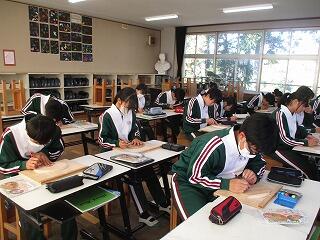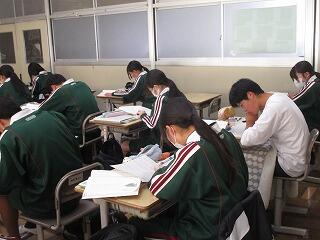 3年1組の理科の授業では、教室で各自がテストのための学習を集中して行っていました。