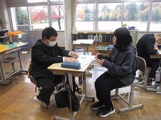 6年生が2班に分かれ、それぞれ中学3年1組と2組で学校説明の担当をしました。