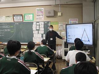 3年2組の数学の授業では、相似な平面図形の面積の関係について学習していました。