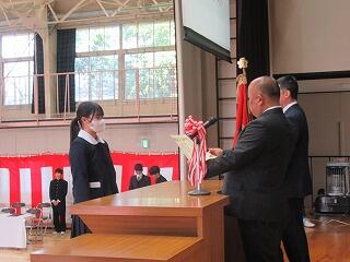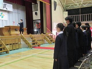 代表生徒からのお礼の言葉や、合唱が披露されました。また、先日の3年生を送る会がオンラインでの実施になった関係で、披露できなかった1・2年生への合唱もこの場で披露することができました。