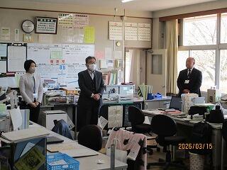 スクールカウンセラーの先生と学力向上推進リーダーの先生が、本年度最終勤務日になりました。職員へのご挨拶をいただきました。1年間、生徒や教職員のために大変お世話になりました。ありがとうございました。