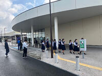 1年生出発の様子をお伝えします。出発式・バス乗車の様子