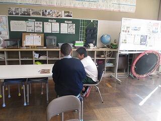3年1組の理科の授業では、前時の実験の結果をもとにグラフを書く作業をしていました。教育実習生の授業だったので、大学の先生が参観に来られました。ありがとうございました。