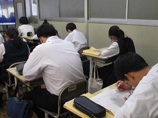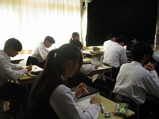 3年2組の英語の授業では、集中してリスニングを行っていました。
