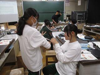 2年2組の理科の授業では、「感覚器官のつくつくりとはたらき」について学習していました。皮膚の触覚について、つまようじ2本を使って、友達同士で間隔の違いによる感じ方について実験をしていました。
