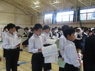 各クラスの合唱を聞き合うことは初めてだったので、お互いに少し緊張しながらの発表でしたが、さすが3年生と感じさせる合唱をしていました。