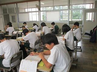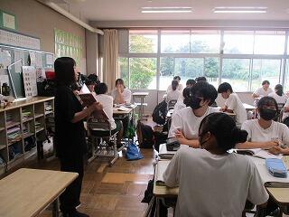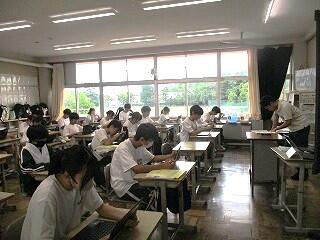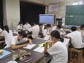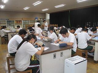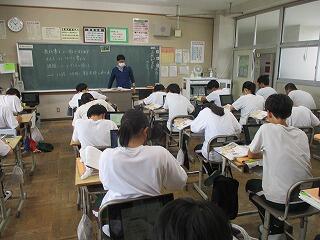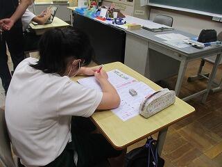 1年1組の家庭科の授業では、「食生活について」学習したことについて、各自が問題を解いていました。