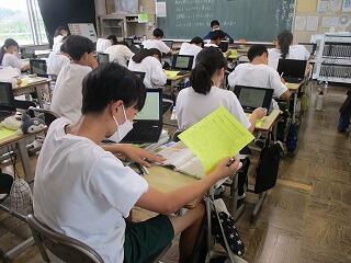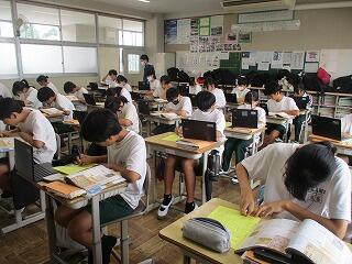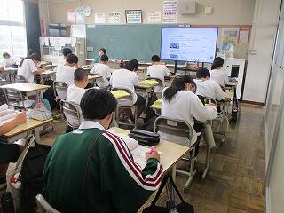 2年2組の社会科の授業では、歴史に関する課題を各自が端末を使ってまとめていました。