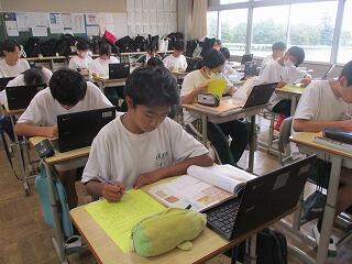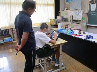 支援1組の国語の授業では、ドリルや端末を使って漢字の問題にチャレンジしていました。