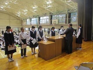 本日は全校朝会で、2学期の学級委員長・副委員長の任命を行いました。2学期になりました。各クラスの学級委員長と副委員長を中心に協力し合って、よいクラスやよい学年をみんなで作っていきましょう。委員長さん・副委員長さん、よろしくお願いします。