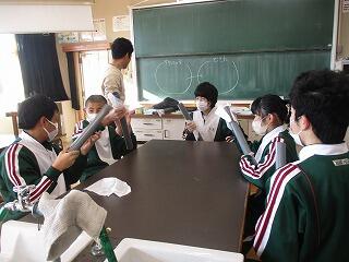 2年2組の理科の授業で、「霧のでき方について」友達に説明して、理解を深めていました。