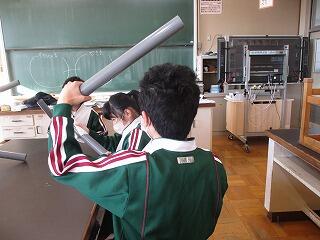 支援学級の理科の授業では、静電気について学習していました。静電気を起こす実験を行っていました。