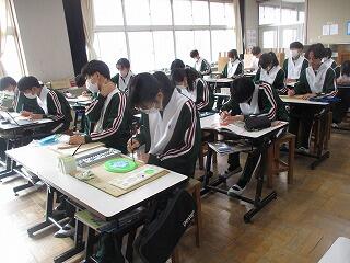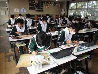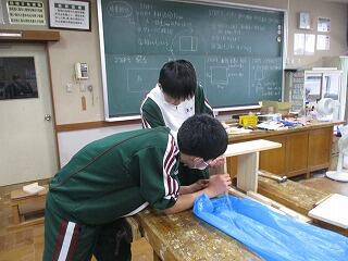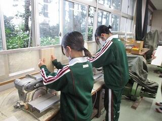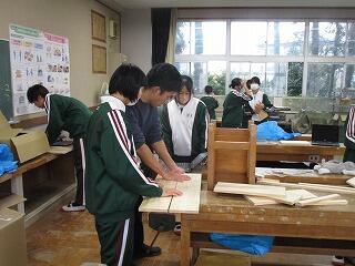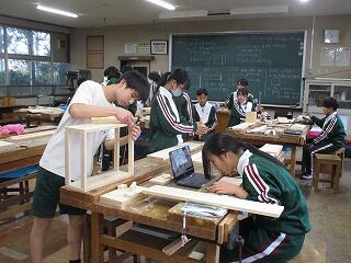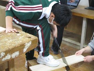 1年2組の技術の授業では、各自が木製のラックなどを作成していました。皆一生懸命でした。