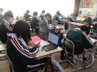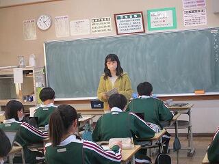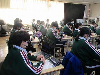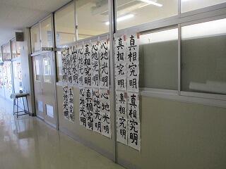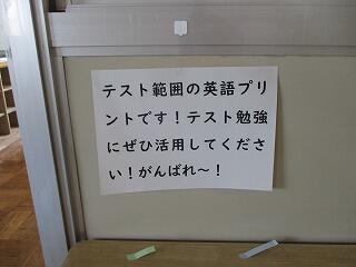 2年生の廊下には、スキー学習の掲示物がはって貼ってありました。定期テストに向けて英語のプリントが置かれていました。積極的に活用しましょう。