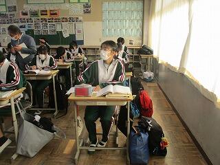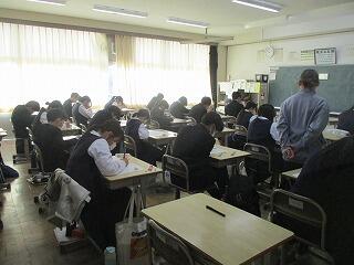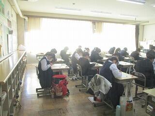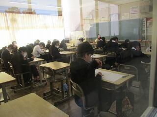 1年生はそれぞれのクラスで同時に数学の単元テストを行っていました。