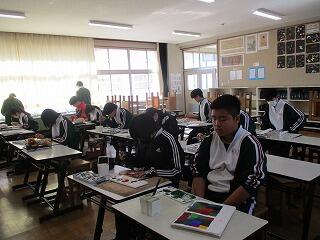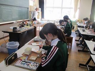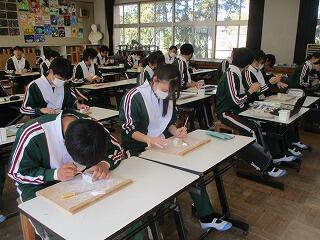 3年2組の美術の授業では、皆集中して作品に向き合っていました。