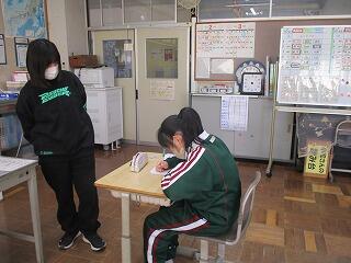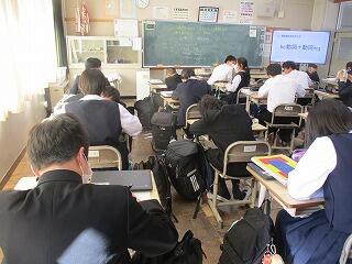 本日は小中一貫教育の取組の一つとして、小学校の先生が本校に「異校種体験研修」に来られました。生徒にとっては、小学校の担任の先生であった生徒もいます。授業や生徒の様子を参観していただきました。お忙しいところご来校いただきありがとうございました。