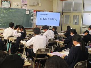 1年1組の英語の授業では、現在進行形について学習していました。