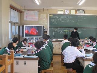 1年2組の理科の授業では、火山の噴火の仕組みについてビデオ教材を見ているところでした。