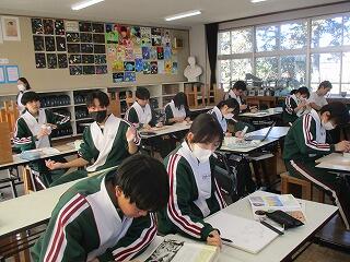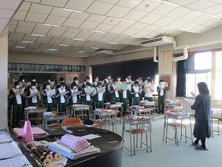 3年1組の音楽の授業では、卒業に向けての合唱曲の練習をしていました。気持ちが伝わり感動させられました。