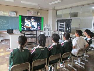 その他に○Xクイズや赤見中ジャンケン王決定戦などを行いました。モニターで担当の生徒とジャンケンをして、勝った人が、集まりました。最終的にジャンケン王が決まりました。