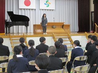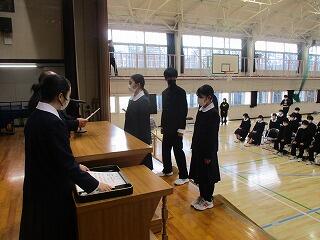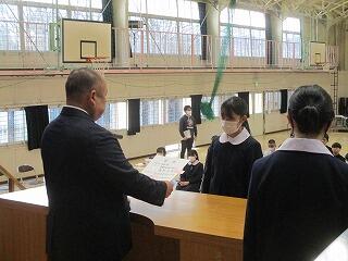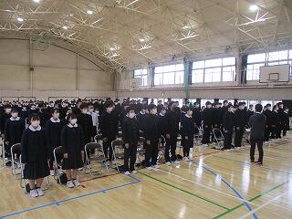 卒業式練習及び準備活動 3/6(金) 投稿: 赤見中 (15:57) 卒業式に向けて全体練習を行いました。初めに、3年生の下野美術展の入賞者の表彰を行いました。 卒業式の練習は、入退場や礼法、式歌の練習を行いました。本番に向けて気持ちを高めて、いい卒業式にしましょう。 今日の給食です。 午後は、卒業式の準備と清掃活動を行いました。在校生が卒業生のために、自分の役割分担で一生懸命活動していました。気持ちが伝わってきてうれしくなりました。ご苦労様でした。 Tweet -
