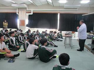 本日の5時間目、2年生は職業講話を行いました。市内の「和菓子職人」の方に講師として来ていただきました。将来の職業を選択するにあたって、ただ職業を選ぶだけでなく、その職業に就いて「何を成したいか(何をしたいのか)」が大事であるというお話を聴きました。他にもご自身の経験談などもお話しいただき、生徒達は共感しながら熱心に聴いていました。