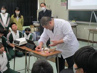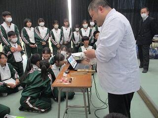 また、同じ材料で、桜の花や花びらをイメージして、違った形の和菓子をつくる実演をしていただきました。生徒達は感動していました。貴重なお話をいただき、進路選択に向けてそれぞれが考える良い機会となりました。講師の方には、お忙しいところ大変ありがとうございました。